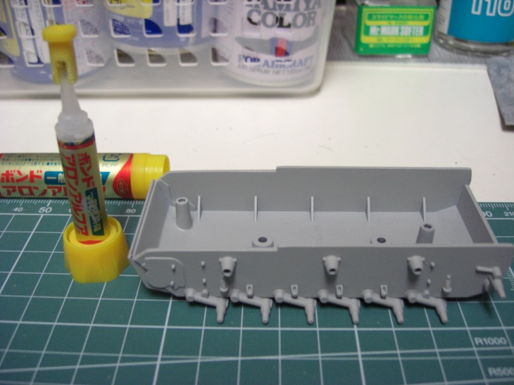 アロンアルファを使って先程組み立てたリアパネルを取り付けます。