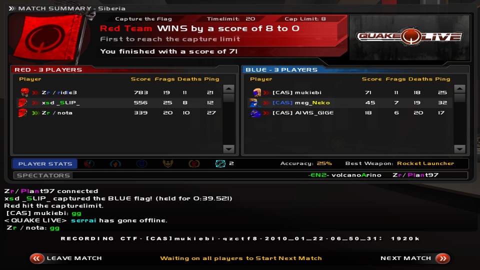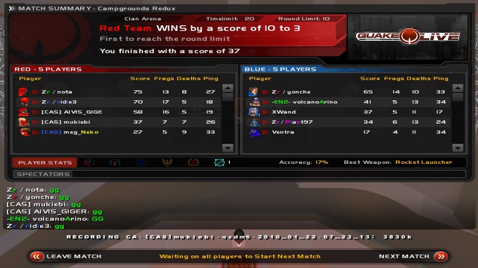 Quakeliveでは初めてのクラン戦となったわけです。
